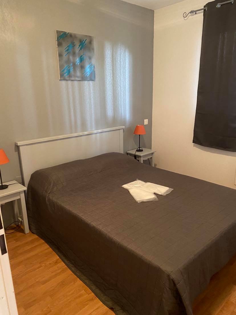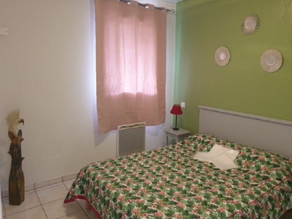 Accommodation for 2 to 4 people with 1 bedroom with a double bed, bathroom, toilet, living room and and equipped kitchen