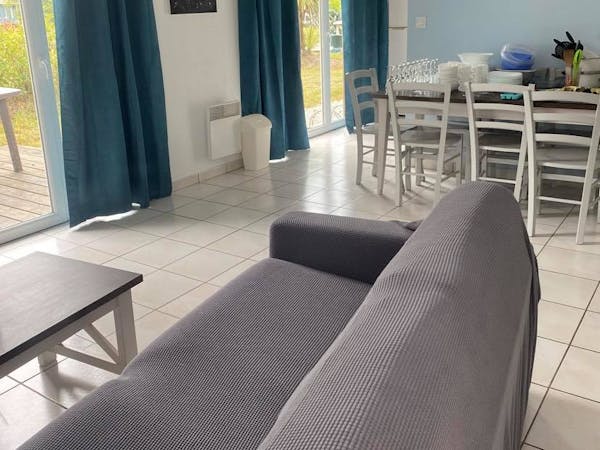 Villa for 6 people with 1 bedroom with a double bed, 1 bedroom with twin beds, 1 bedroom with bunk beds, bathroom, toilet, living room and an equipped kitchen.