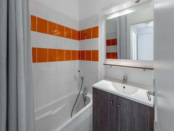 Accommodation for 2 to 6 people with 1 bedroom with a double bed, bathroom, toilet, living room and an equipped kitchen